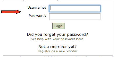 Congratulations on setting up your Public Purchase Vendor Account! You should now be able to access your account, and search for agencies that are currently using our site for their bid process. Now you'll need to fulfill the second part of Vendor Registration - Registering with an agency. To register with an agency you will need to be logged into your account. Click on Login on the home page.