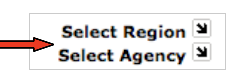 In order to register for an agency you will need to select that agency from the drop down menus on the right-hand side of the page. Click on Select Region to choose the State and Select Agency to choose the agency you are registering with from the list.