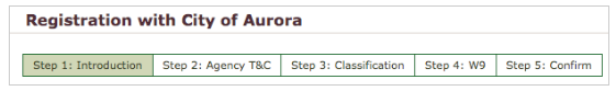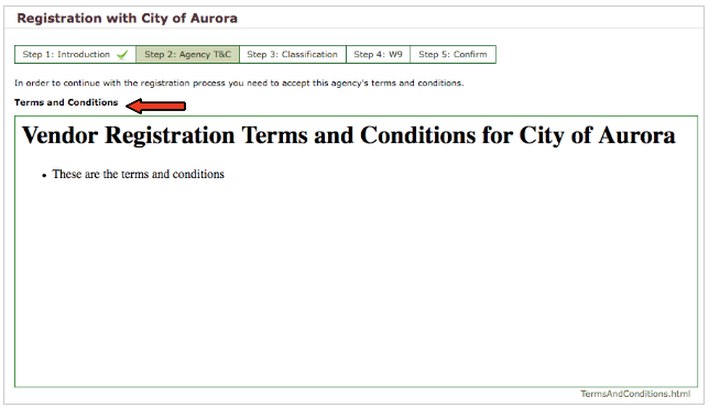 You will be directed to the Agency's Registration page. Depending on the agency, their vendor registration will usually be a 5-Step process.