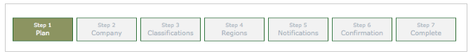This page will take you through Step 1: Plan. Here you will be able to select one of our Registration options. You can choose our Free Registration or Bid Syndication, which requires a yearly fee. Click on the "Free Registration" button.