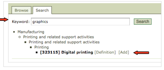 You can search by keywords if you don't know which codes your company fits under. Simply enter the keyword and choose the best match. You can choose just 1 code or as many as you want.