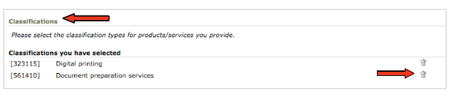 registration will show up here as well. If you wish to remove one or more classifications, simply click on the Trash Can at the right side of the page.